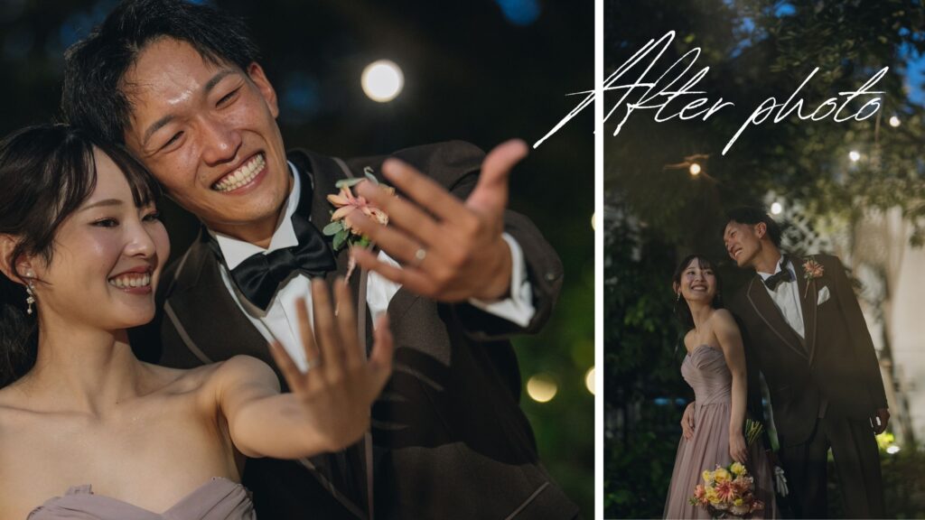 幸せな余韻に包まれながら、夕暮れのガーデンでアフターフォト。
