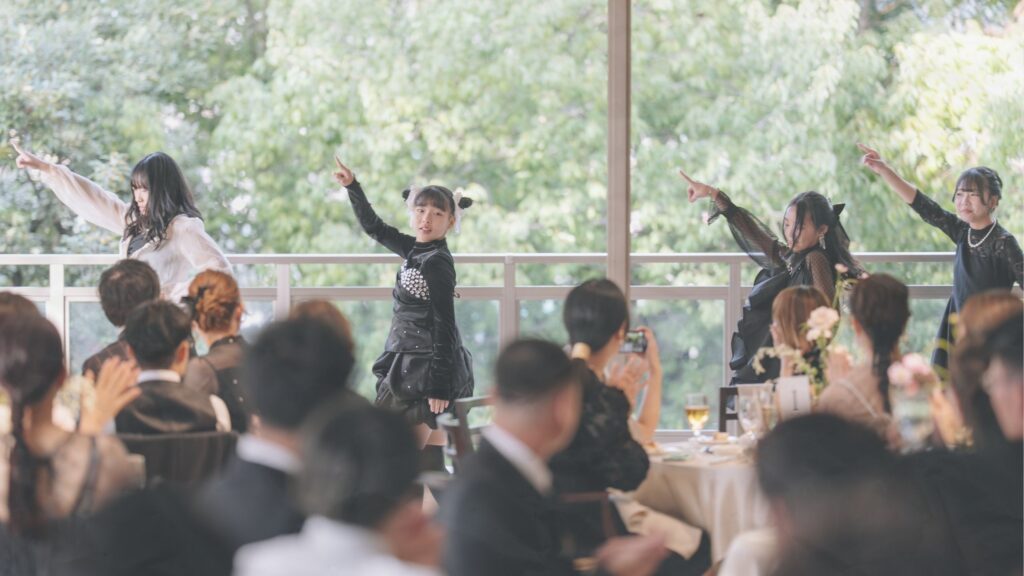 ゲストが会場を盛り上げ、祝福の気持ちが重なり合い、にぎやかであたたかな祝宴に。